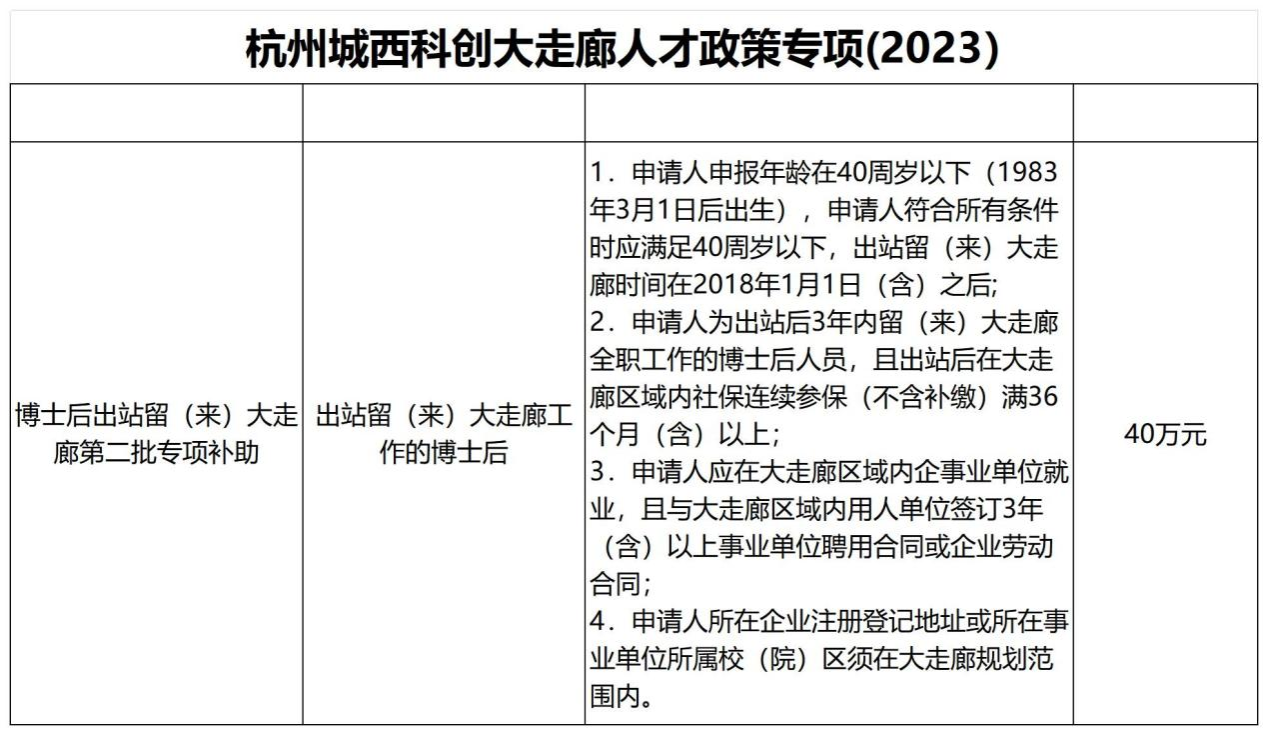 根据浙江省委、省政府关于进一步推进杭州城西科创大走廊打造创新策源地的实施意见和杭州市委、市政府关于加快推进杭州城西科创大走廊高质量融合发展打造创新策源地的实施意见有关要求,“十四五”期间,继续设立杭州城西科创大走廊创新发展专项资金。对于海内外高层次人才来(留)杭州城西科创大走廊的,将给予专项政策支持。具体如下: